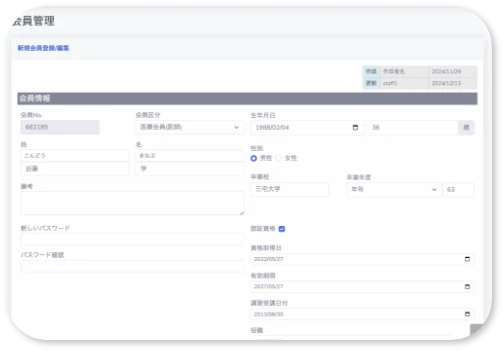認定資格、専門医の管理機能もあるので、各学会様のご希望に合わせ、資格の有効期限のお知らせなど各種カスタマイズ可能。