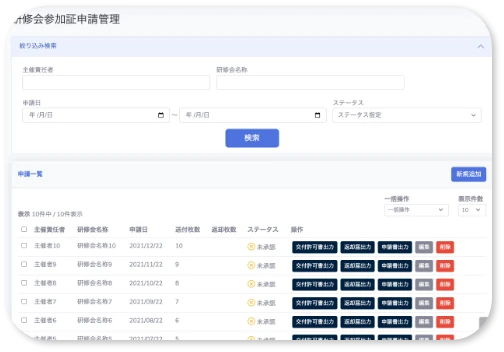 研修会や学術大会などの参加者管理から、交付書類・各種届け出書の作成もボタン一つで対応可能。