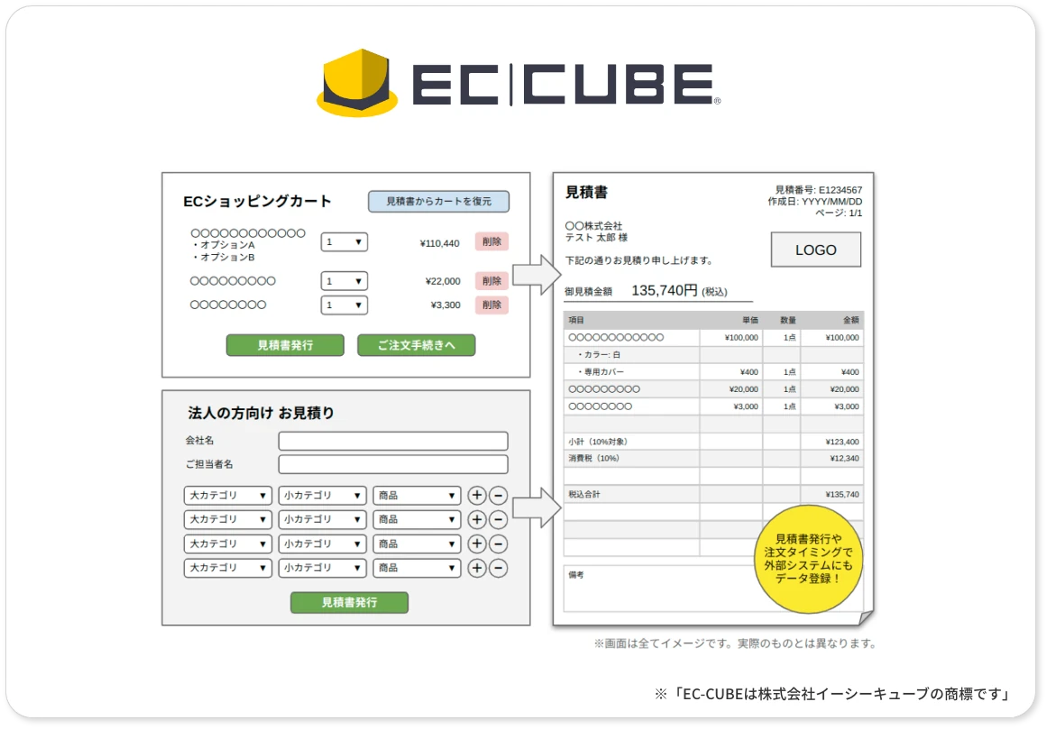 注文や見積書発行があった際には他社サービスに自動でデータ登録される機能も備えています。