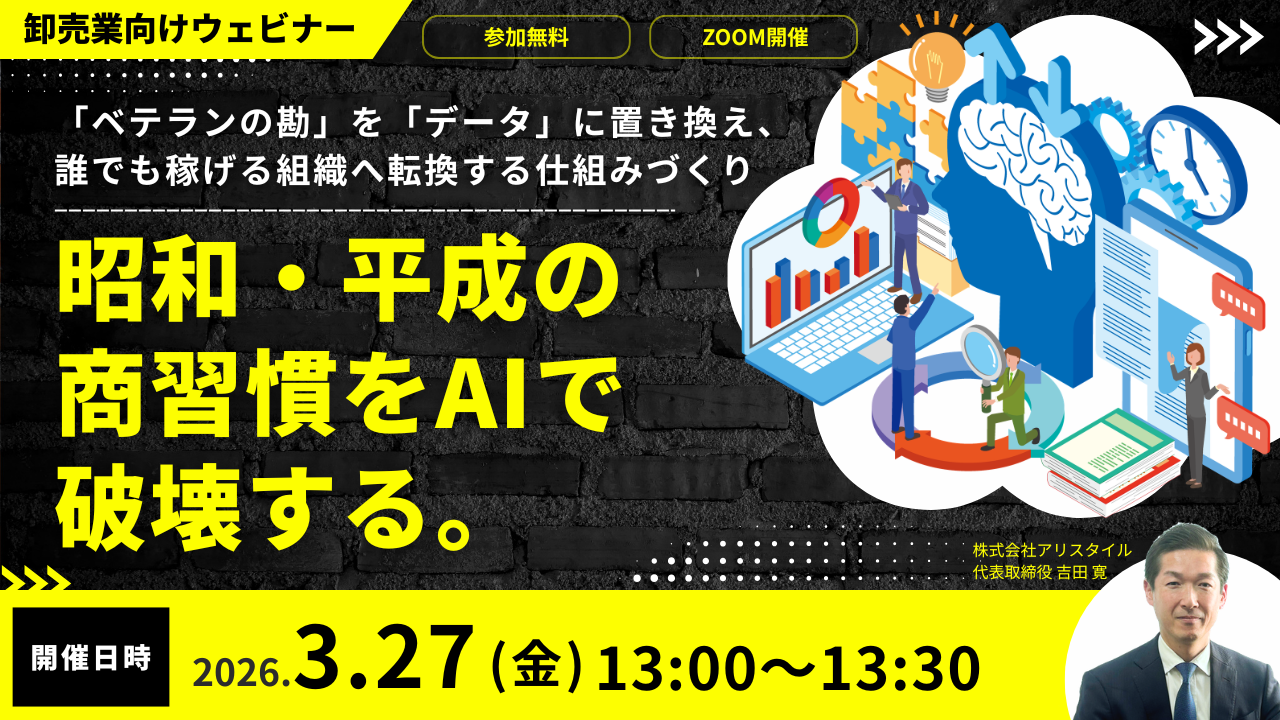 【開催予告】昭和・平成の商習慣をAIで破壊する。~「ベテランの勘」を「データ」に置き換え、誰でも稼げる組織へ転換する仕組みづくり~