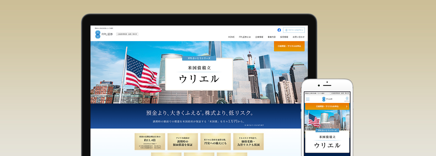 弊社では、この課題を解決するためのデジタル変革(DX)パートナーとして、米国債資産運用サービス「ウリエル」のランディングページ(LP)制作(デザイン・コーディング)、およびWeb口座開設システムの開発を担当いたしました。