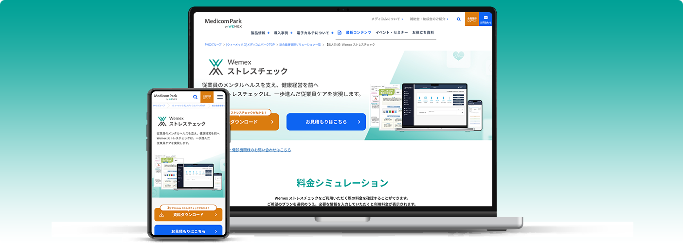 ヘルスケアITプラットフォームを展開するウィーメックス株式会社様のストレスチェック実務安心サポートサイトにおいて、料金シミュレーションシステムを導入いただき